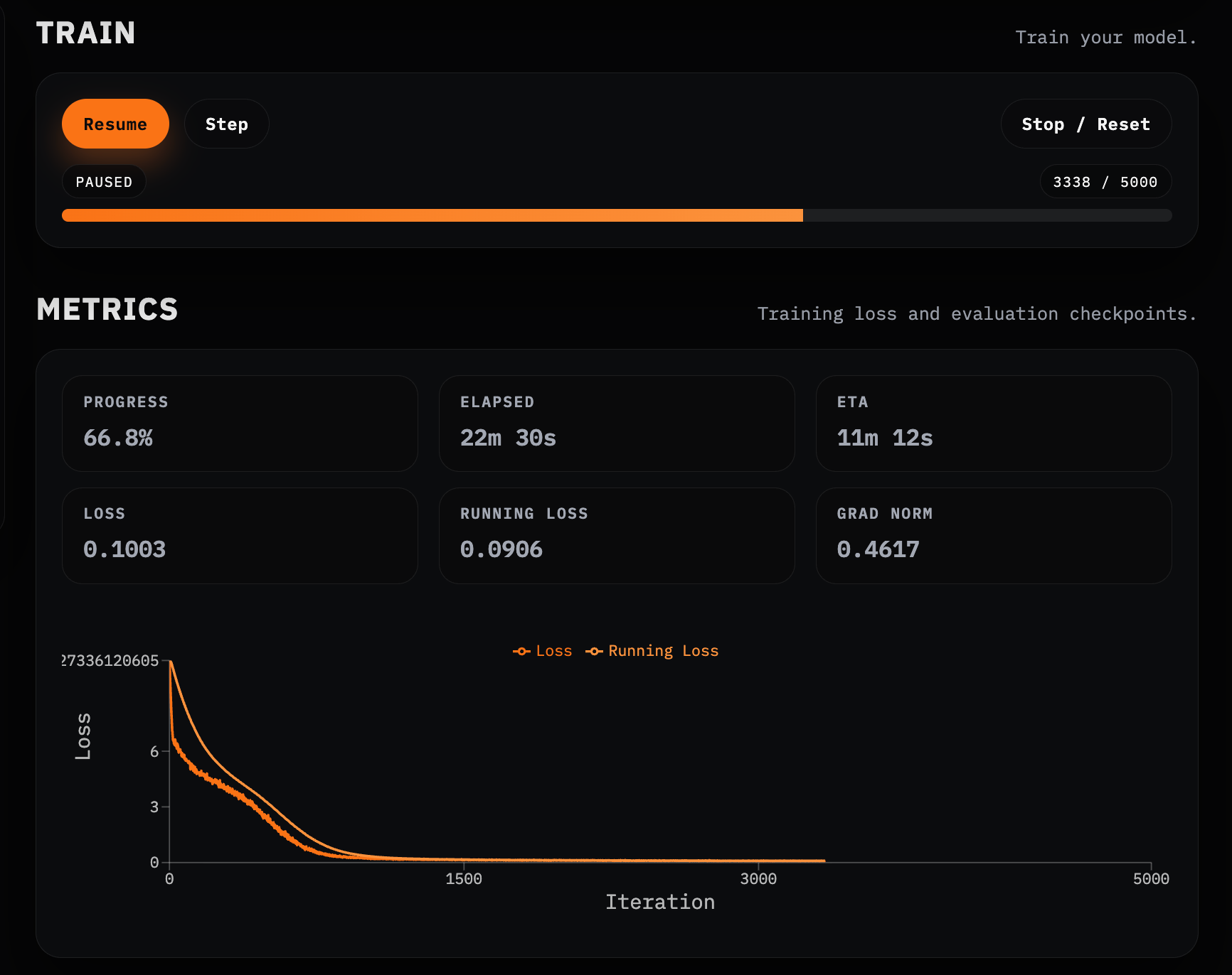 This project is not optimized for speed, cost, or even output quality. It is optimized for learning. The code is clean, modular, and heavily commented. The interface surfaces diagrams, equations, and code specific to the configuration you’ve chosen, rather than presenting a single frozen architecture.